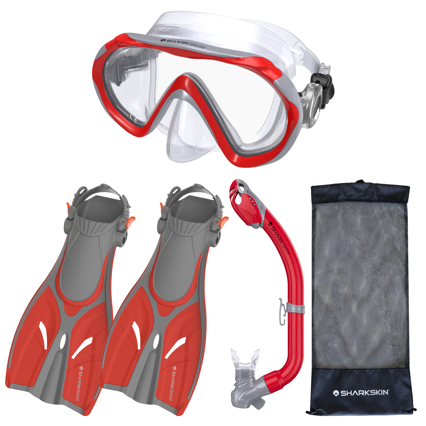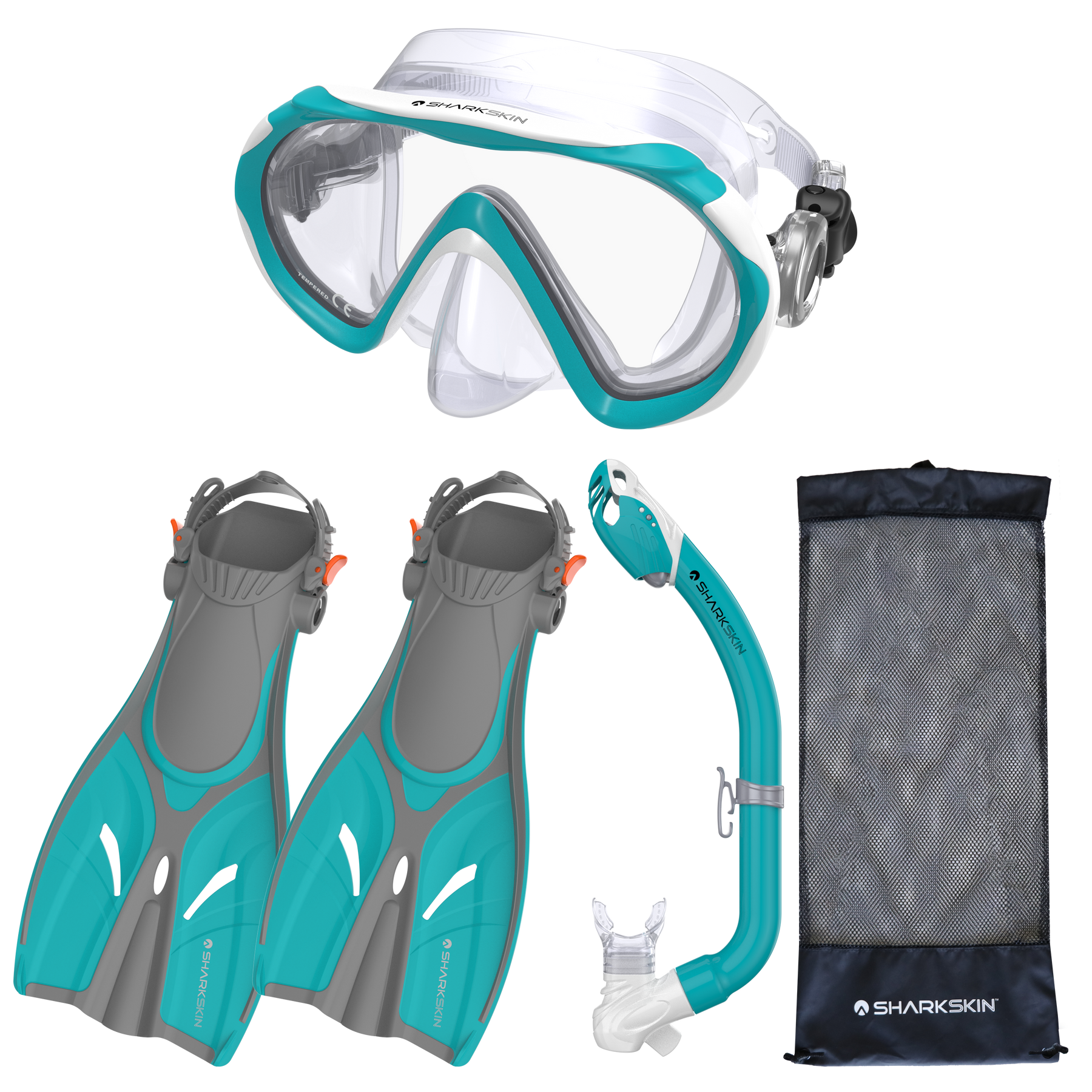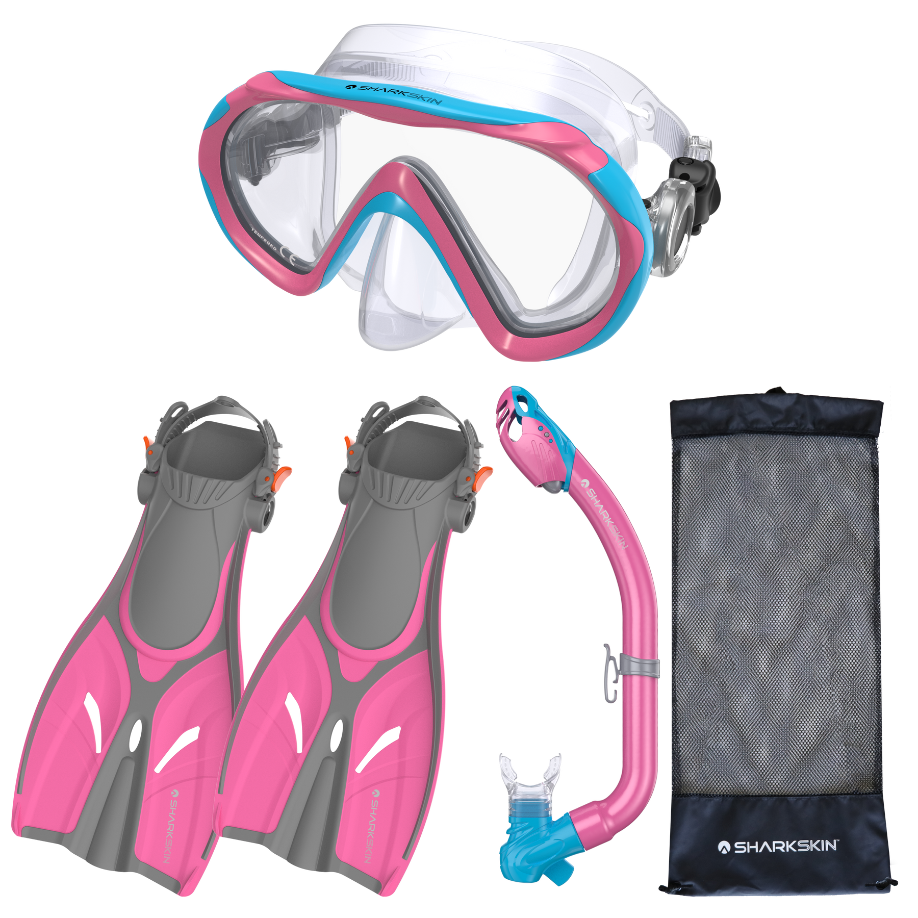 SHARKSKIN JUNIOR MASK, DRY SNORKEL FIN SET WITH MESH BAG
