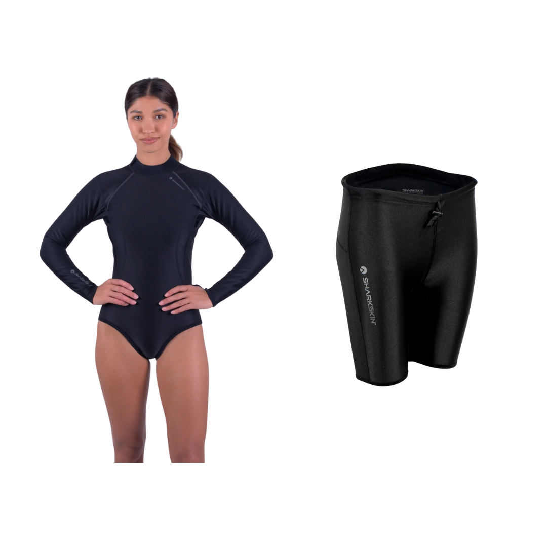 CHILLPROOF LONG SLEEVE STEP-IN - WOMENS NEW + CHILLPROOF SHORT PANTS - WOMENS
