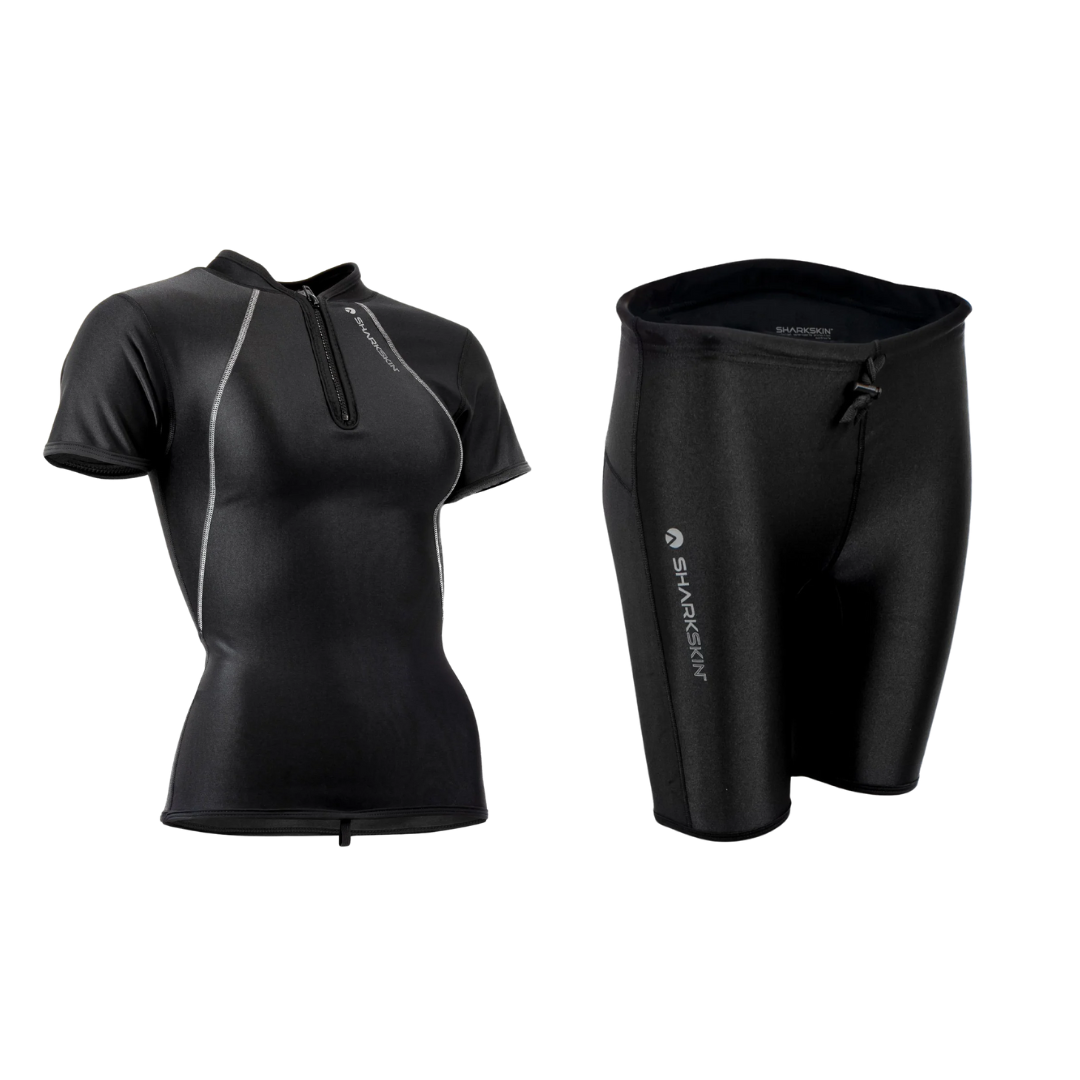 CHILLPROOF SHORT SLEEVE CHEST ZIP - WOMENS + CHILLPROOF SHORT PANTS - WOMENS