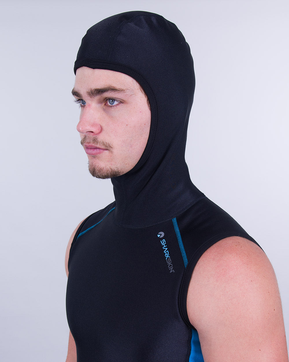 More than 25% of body heat is lost through the head and extremities of the body. The Sharkskin Chillproof sleeveless top with hood is designed to be worn underneath your wetsuit to provide the best warmth and insulation for your torso for colder dives. The hood protects against chafing from mask straps, keeps your head and ears toasty warm and is flexible enough to slide down around your neck in-between dives while on the boat or back on land while remaining comfortable. The Chillproof material allows for better hearing and less chance of ear squeeze than traditional neoprene hoods.