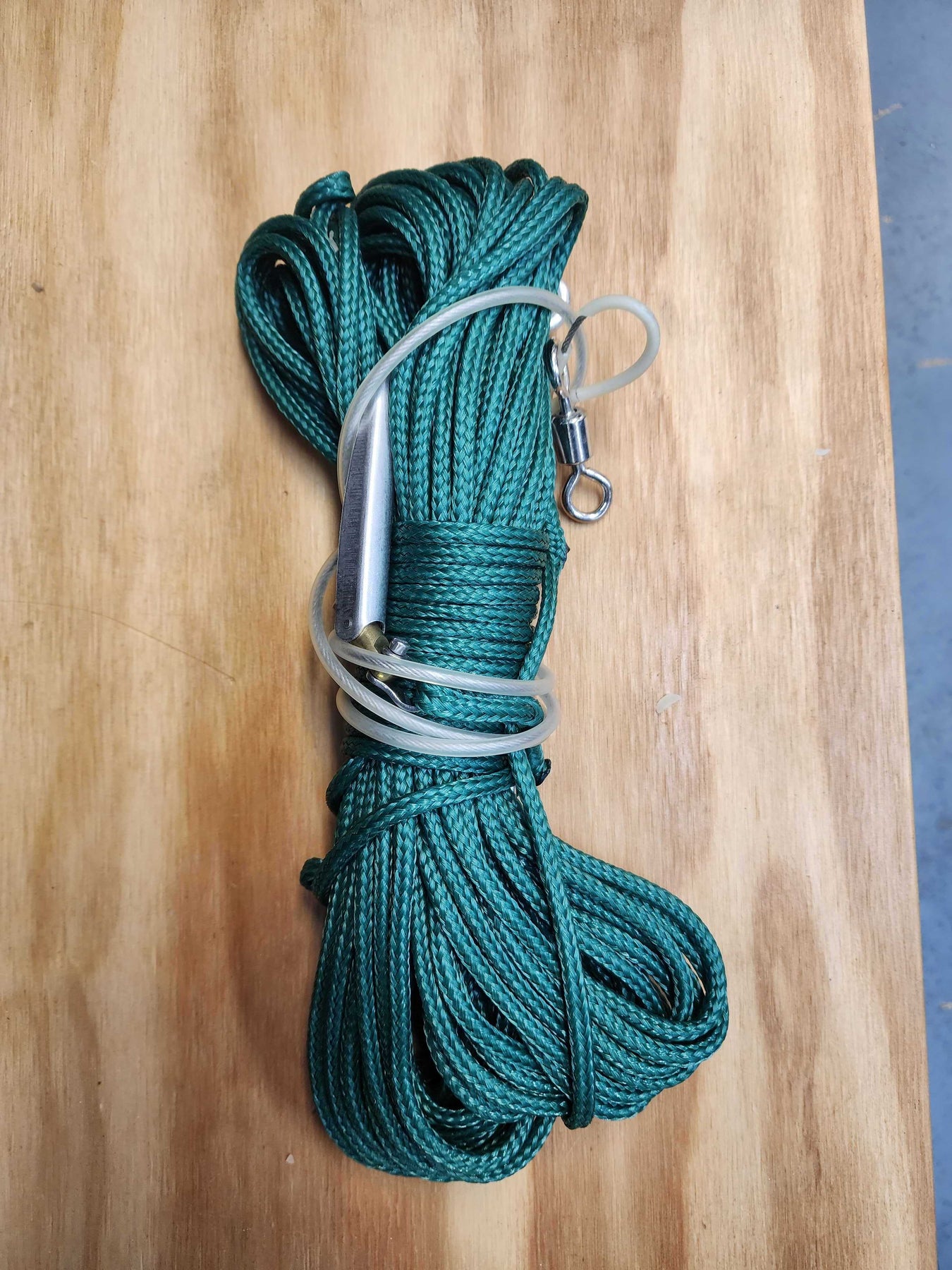 The speed needle allows you to quickly get your catch in the line. As you swim, your fish floats to the end and the stainless steel flopper on the trace keeps your catch at the far end your float line, well away from you.