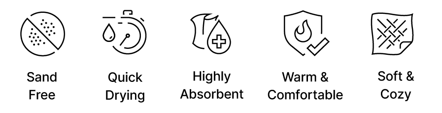 • Quick-Dry Technology: Absorbs more water than traditional towels but dries in no time, keeping you dry and cozy without the weight of a soggy towel.