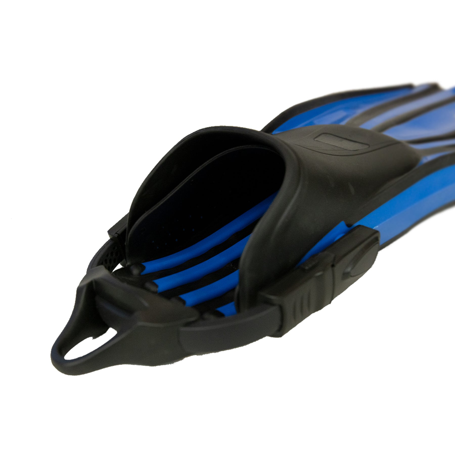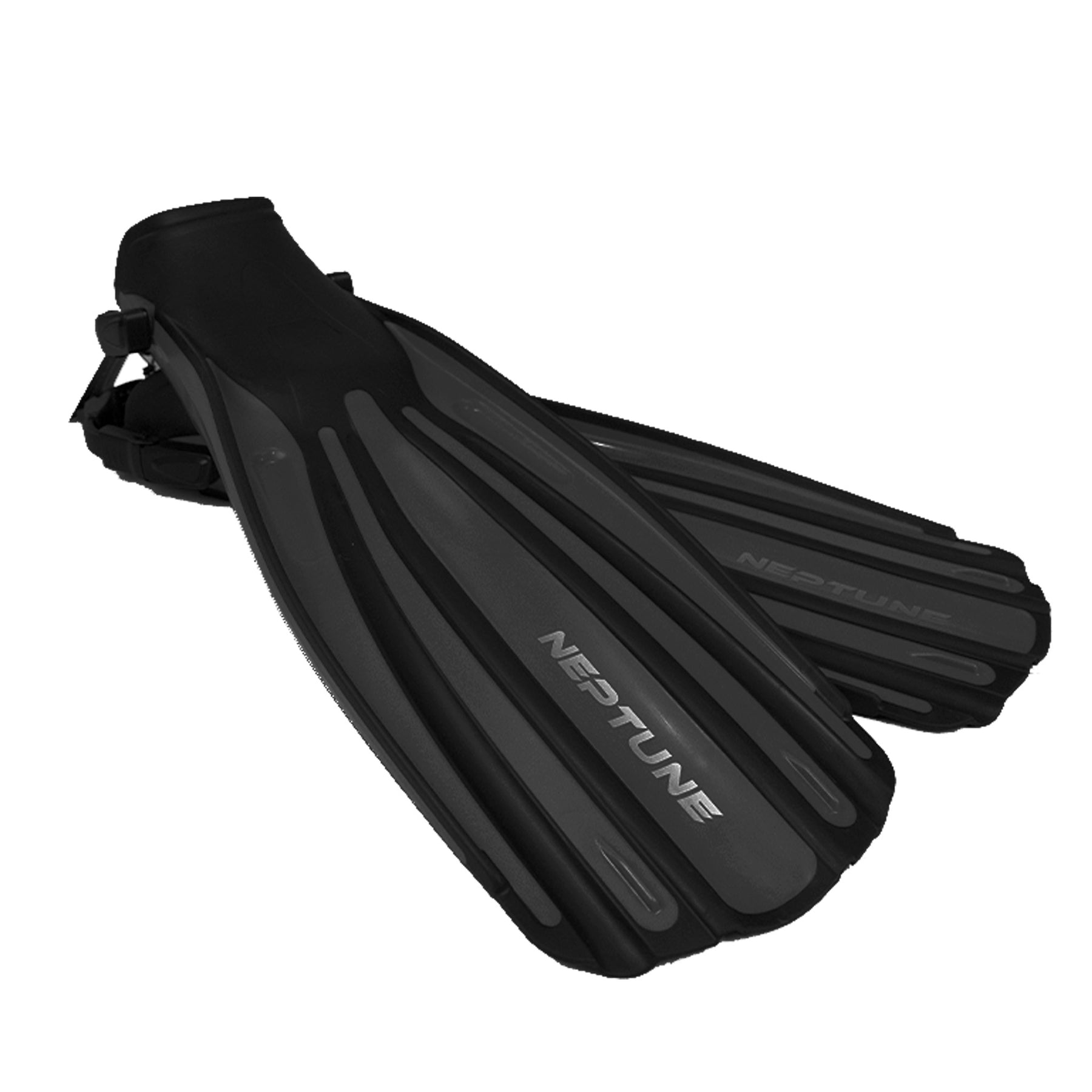 The Neptune Accelerate fin uses a channelled blade design and is made with an open heel SCUBA fin making it a high-performance fin that enhances any scuba experience! The fins performance is improved by the channels as they increase the surface area of the fin while giving thrust direction.