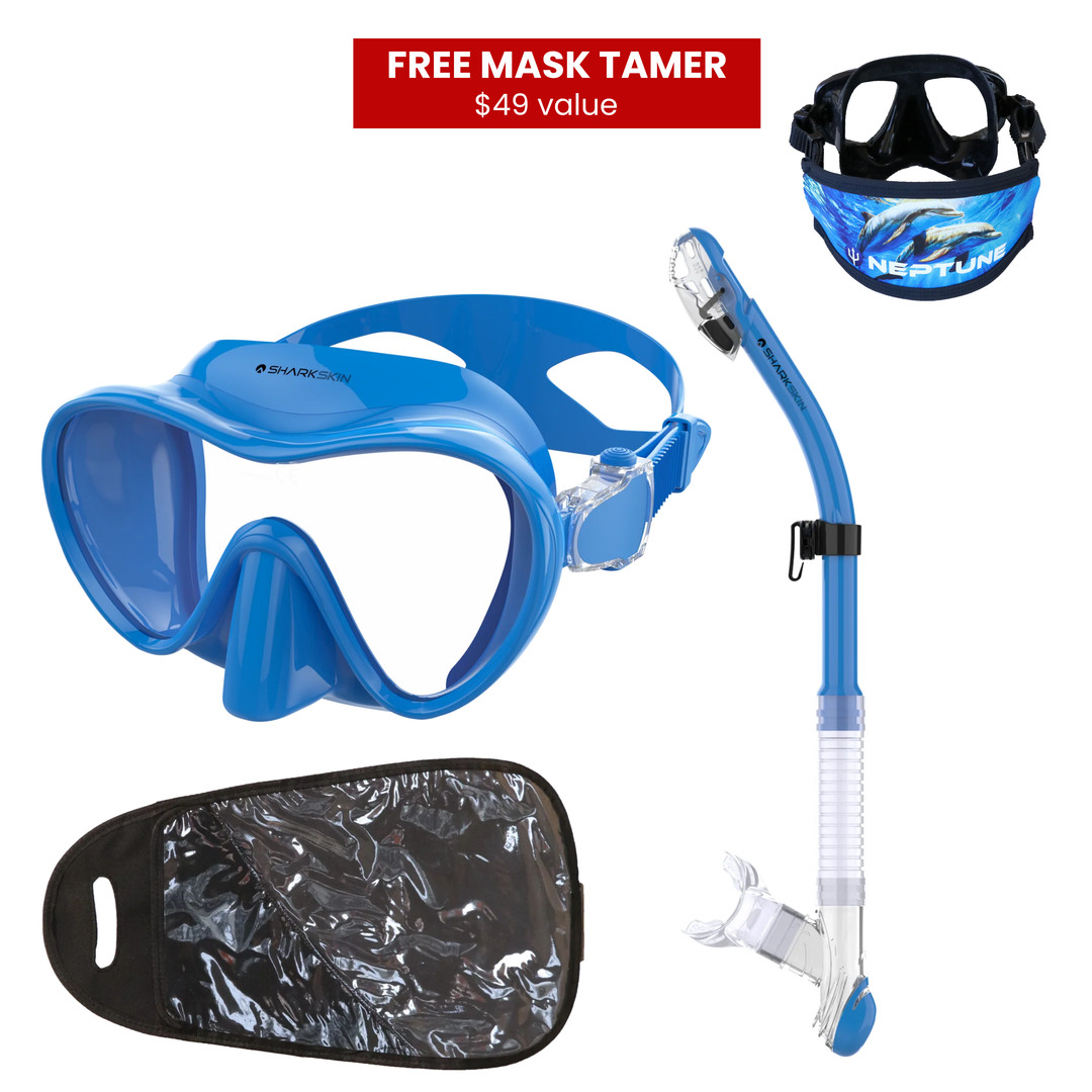 SHARKSKIN ADULT MASK & COMFORT DRY SNORKEL SET WITH MESH BAG