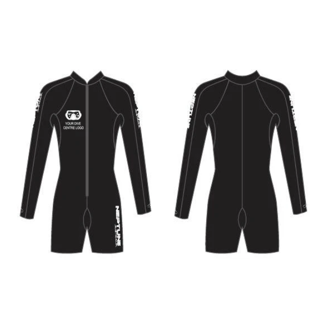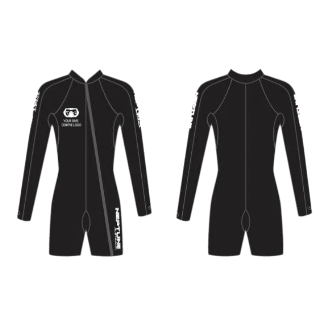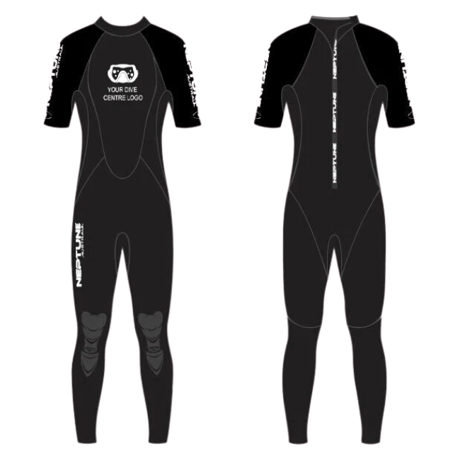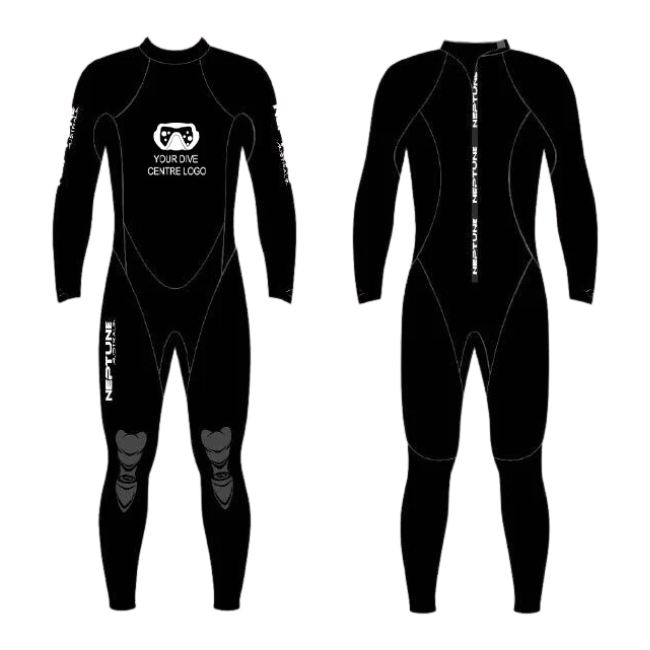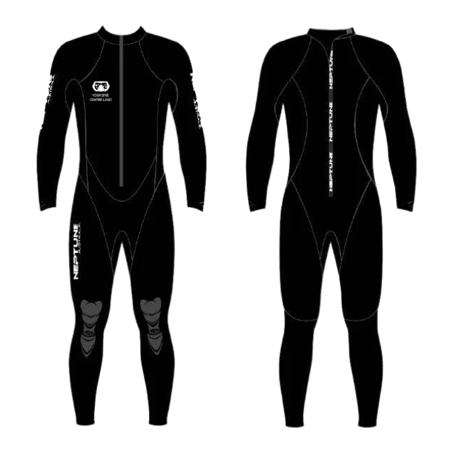 Neptune manufacture a range of neoprene suits and accessories that can be customised and branded with your company logo. We can create custom wetsuits for your dive school or rental department with your brand and web address; why promote the brand of an equipment manufacturer on the most prominent piece of equipment your divers use when you can promote yours?
