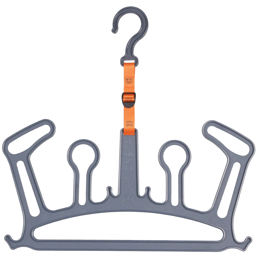 Dries Faster, Lasts Longer: The unique, ventilated design of c-monsta hangers means that you can hang all your gear together in one place, helping it dry faster and last longer. The oversized mouth will fit almost any wetsuit and prevents those damaging neoprene creases. Ventilated spaces for both boots and gloves helps them dry faster and precisely crafted curves keep dripping water away from your wetsuit. You can even thread the hook and strap through a hood!